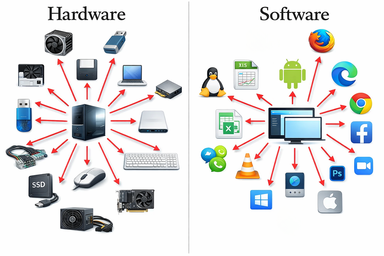 Se existe uma diferença que todo iniciante precisa entender, é esta: todo computador depende de duas partes principais – hardware e software.
